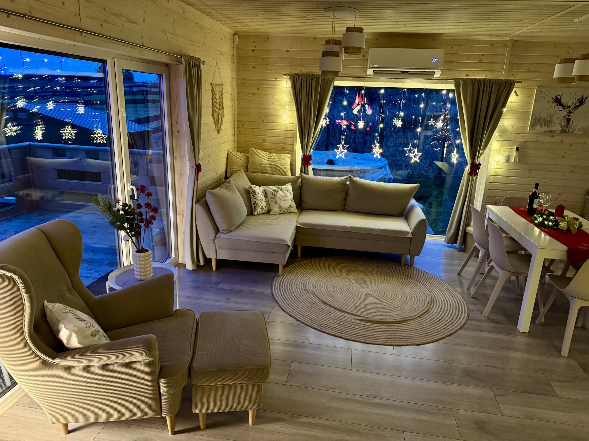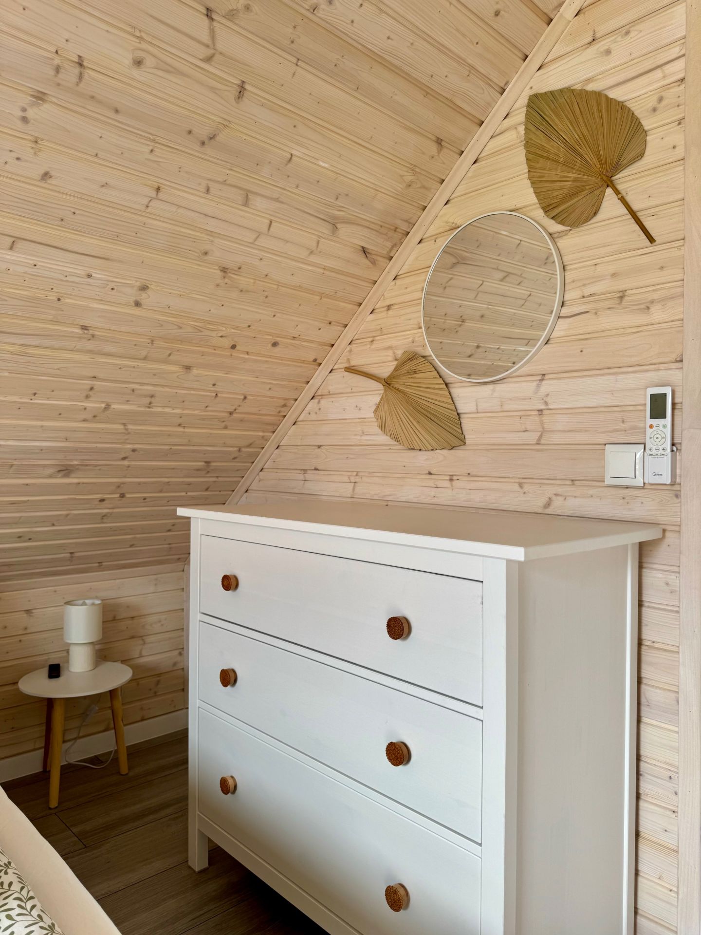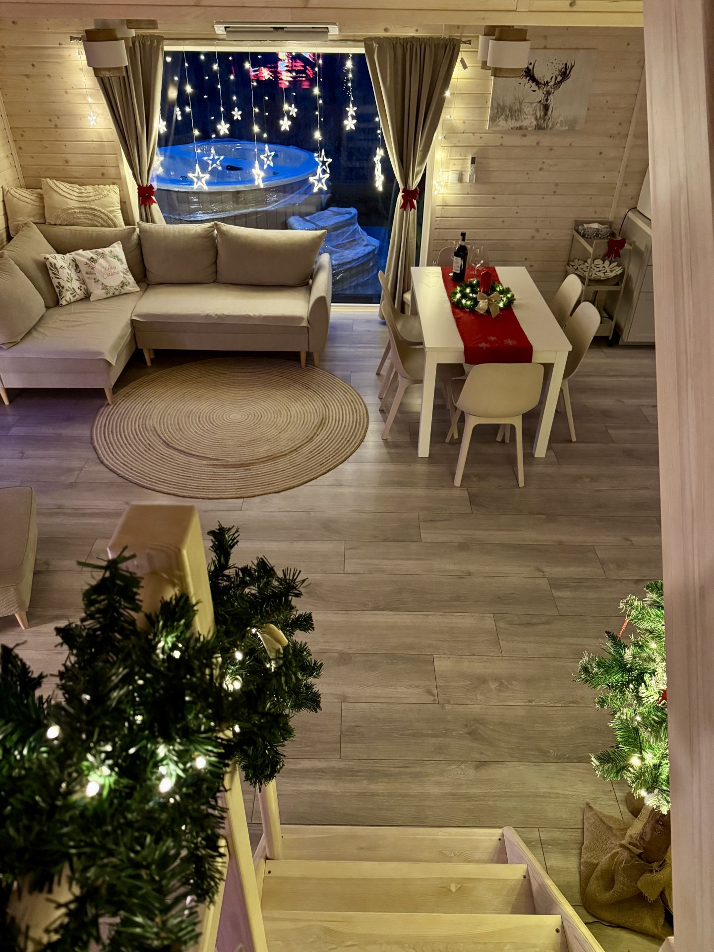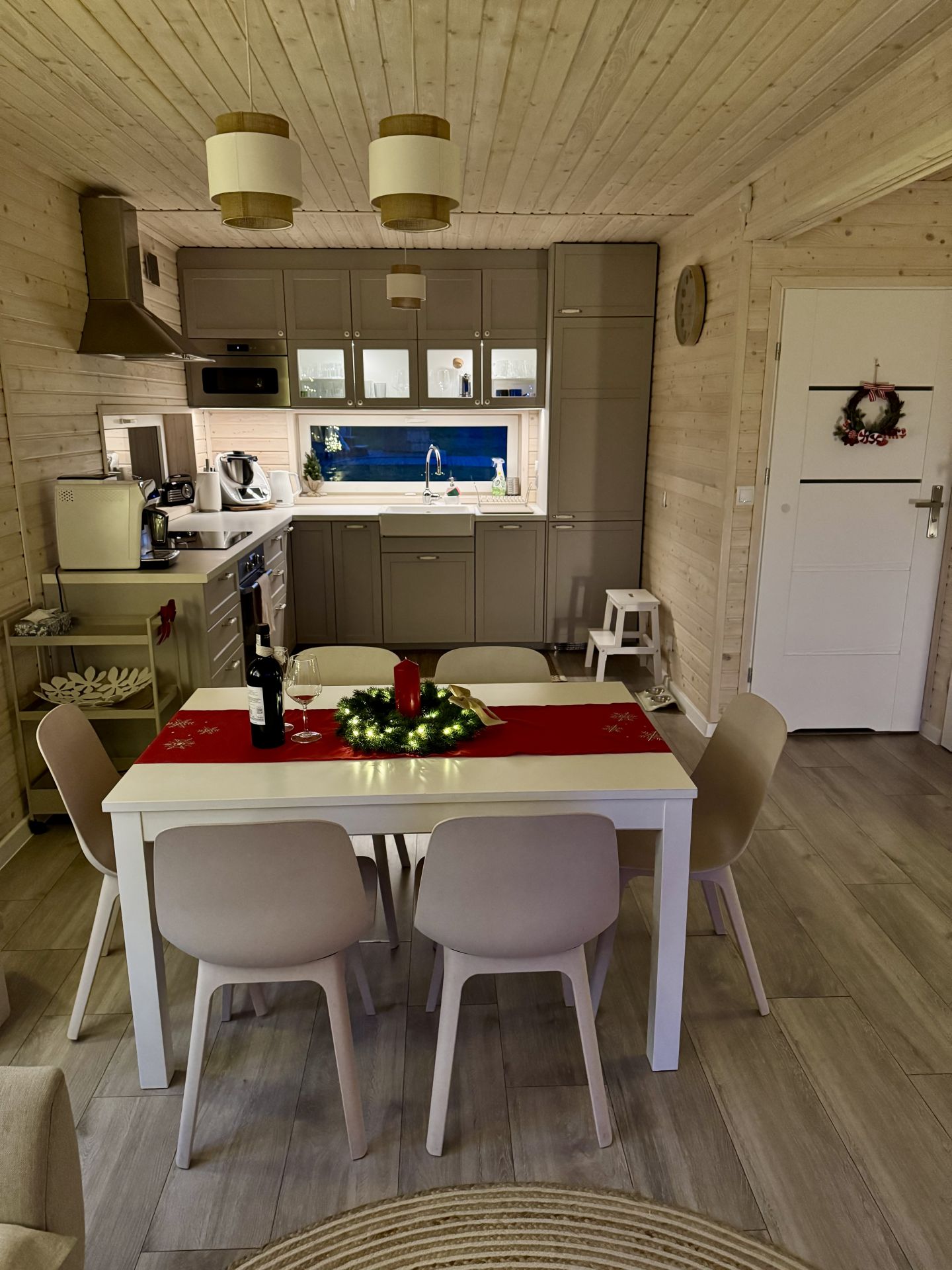 Domek numer 1 to idealne miejsce na wyjątkowy wypoczynek nad Jeziorem Dadaj. Wyposażony w kominek, jacuzzi i saunę, zapewnia pełen relaks i komfort w otoczeniu malowniczej przyrody. Doskonały dla rodzin, par i grup przyjaciół, którzy pragną odpocząć w ciszy i bliskości natury.