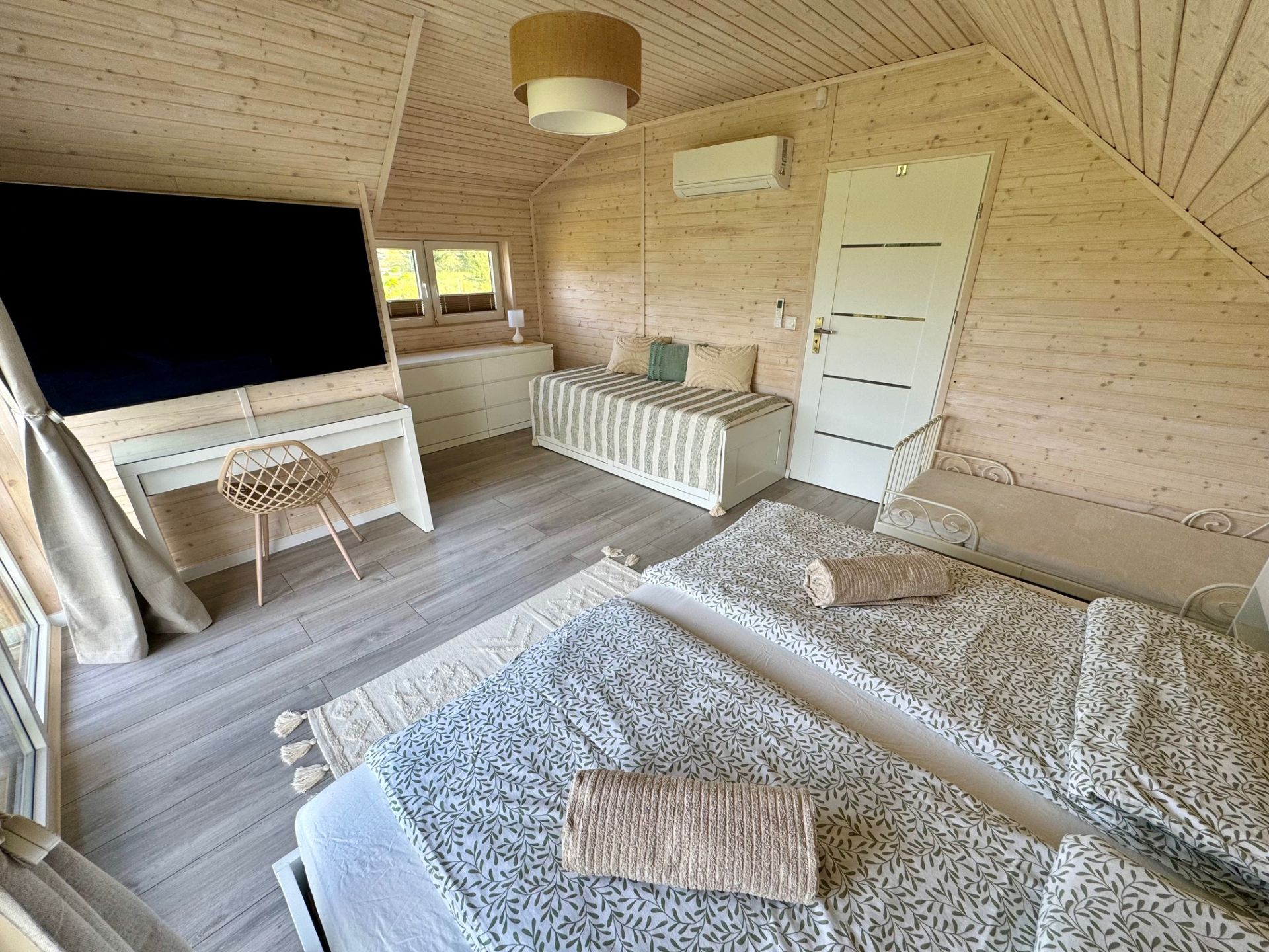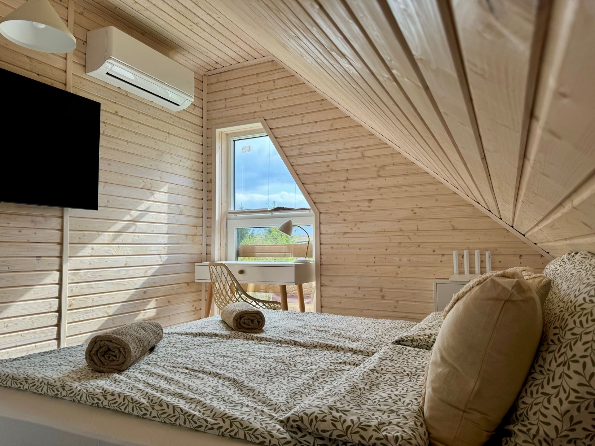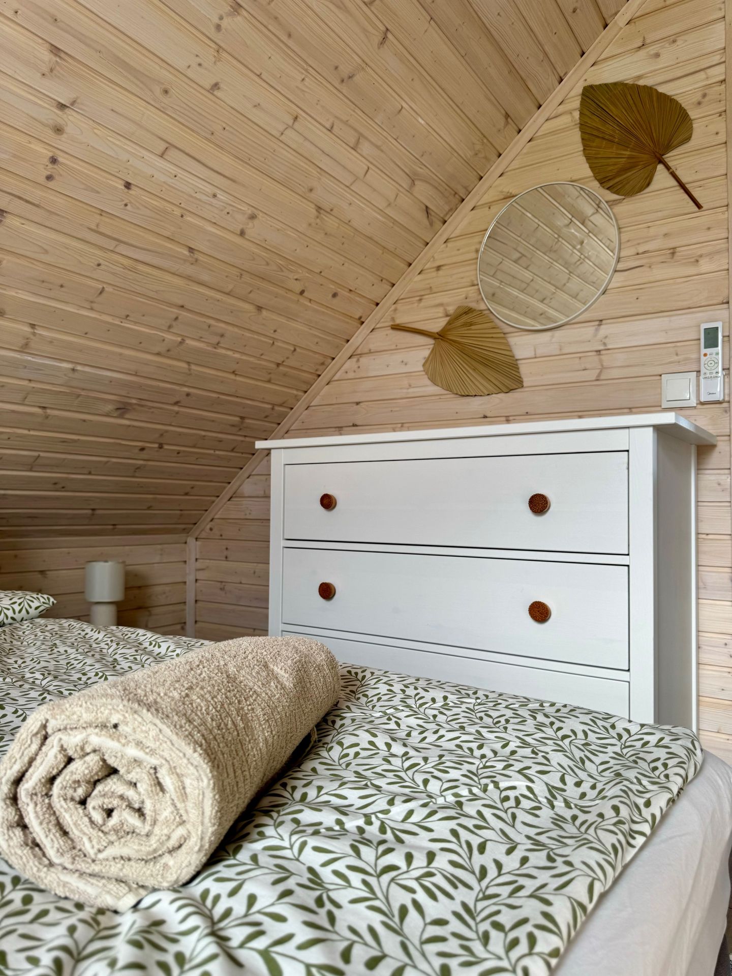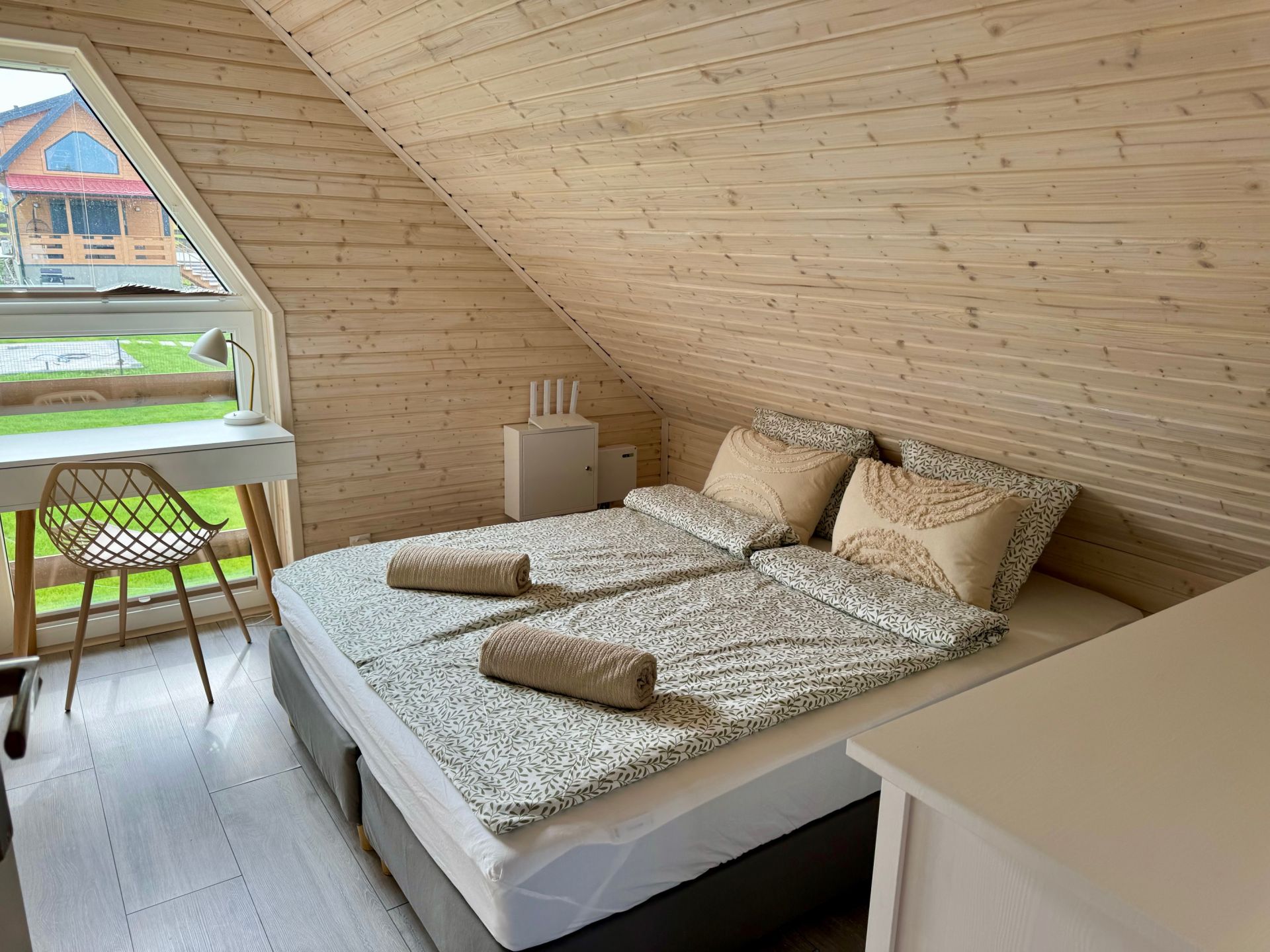 Domek numer 1 to idealne miejsce na wyjątkowy wypoczynek nad Jeziorem Dadaj. Wyposażony w kominek, jacuzzi i saunę, zapewnia pełen relaks i komfort w otoczeniu malowniczej przyrody. Doskonały dla rodzin, par i grup przyjaciół, którzy pragną odpocząć w ciszy i bliskości natury.