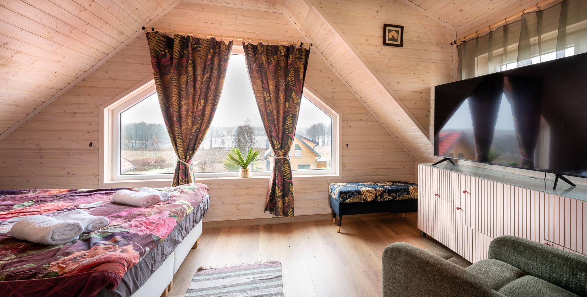 Agusiowo to przytulny dom wakacyjny, idealny dla 6 osób, położony w malowniczym otoczeniu nad jeziorem. Na parterze znajduje się przestronny salon, w pełni wyposażona kuchnia oraz łazienka z prysznicem. Na piętrze do dyspozycji gości są przytulne sypialnie oraz dodatkowe WC.